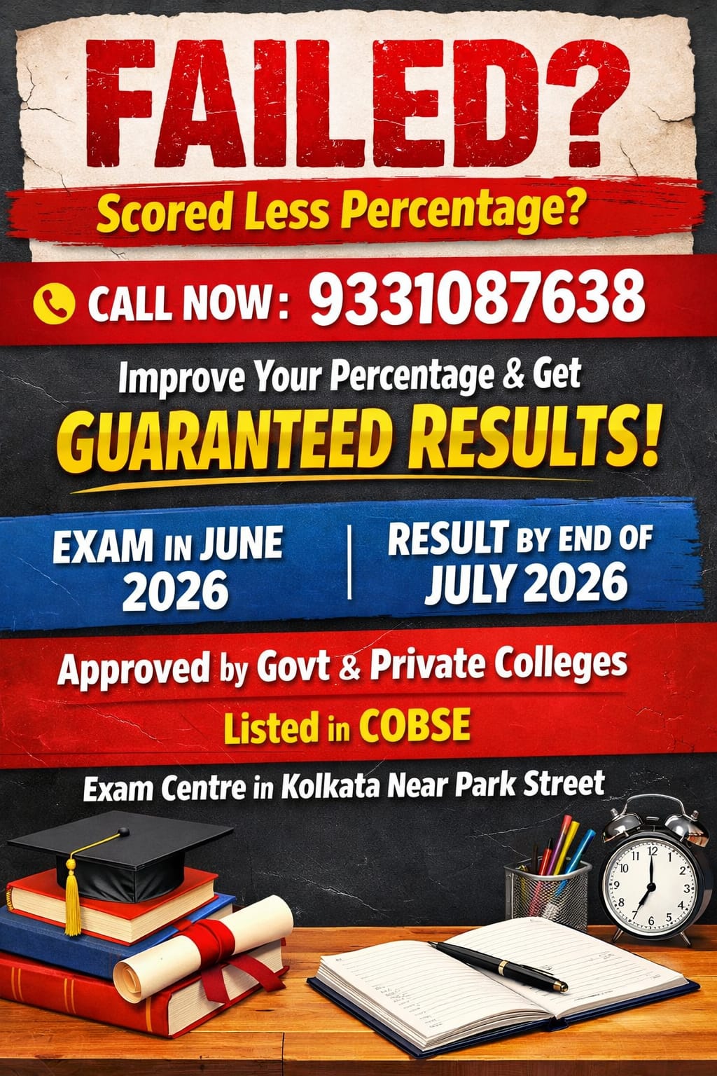 The students failed from any recognize board of India can pass within 45 Days through On-Demand Examination System (ODES) by getting admission in NIOS board- CBSE Pattern (GOVT OF INDIA) in stream 3rd as well as 4th